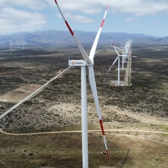 The La Esperanza wind farm in Chile is a renewable energy project located in Negrete, Biobío Region, consisting of 5 turbines with a total capacity of 115 MW, commissioned in 2016 and it supplies power to the Los Pelambres copper mine and the open market.
